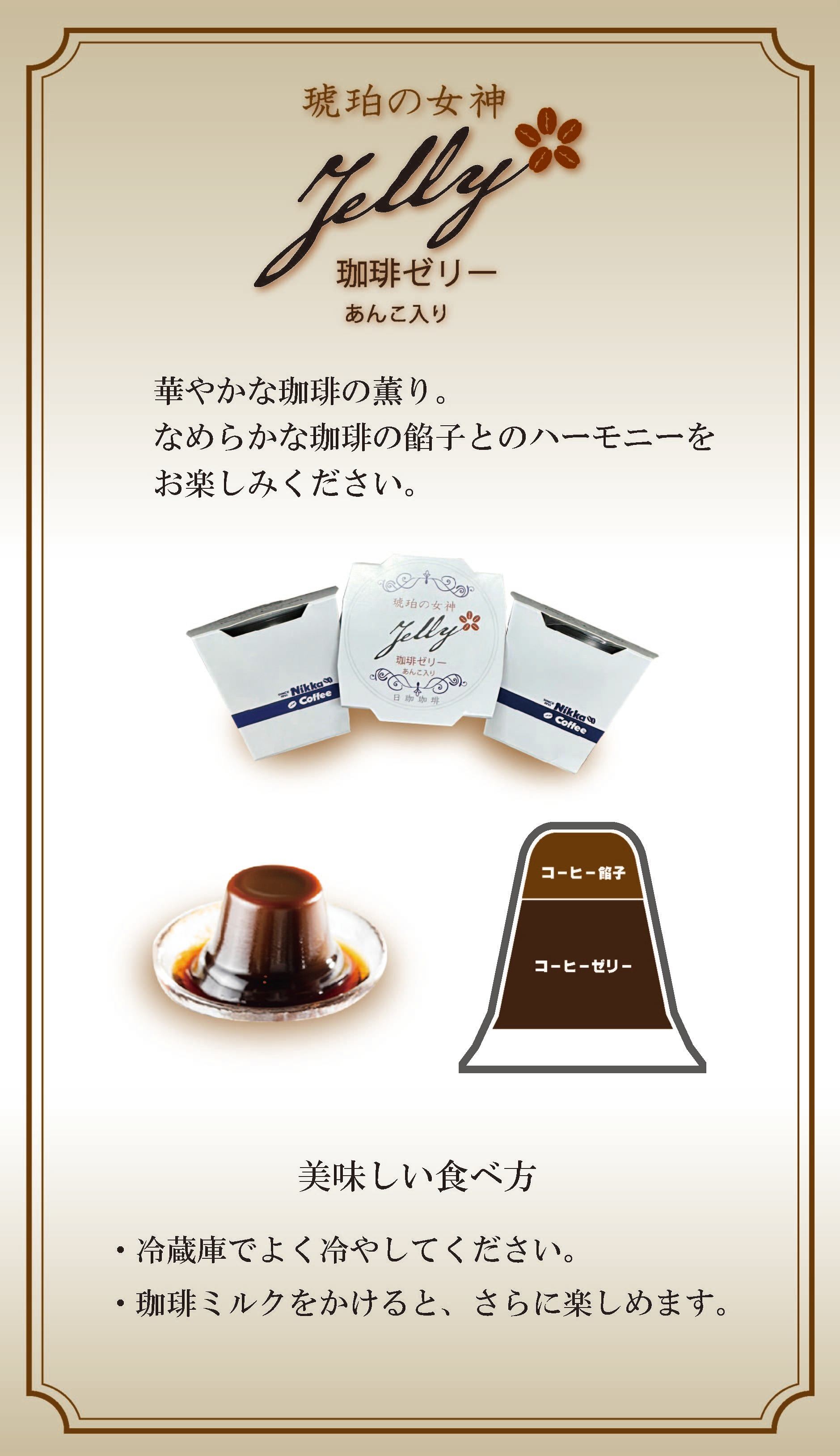 弊社で人気のブラジルショコラをベースに新たにゼリー用のブレンドを作成し、何度も試作を重ねてコーヒーの餡入りのコーヒーゼリーが出来上がりました。