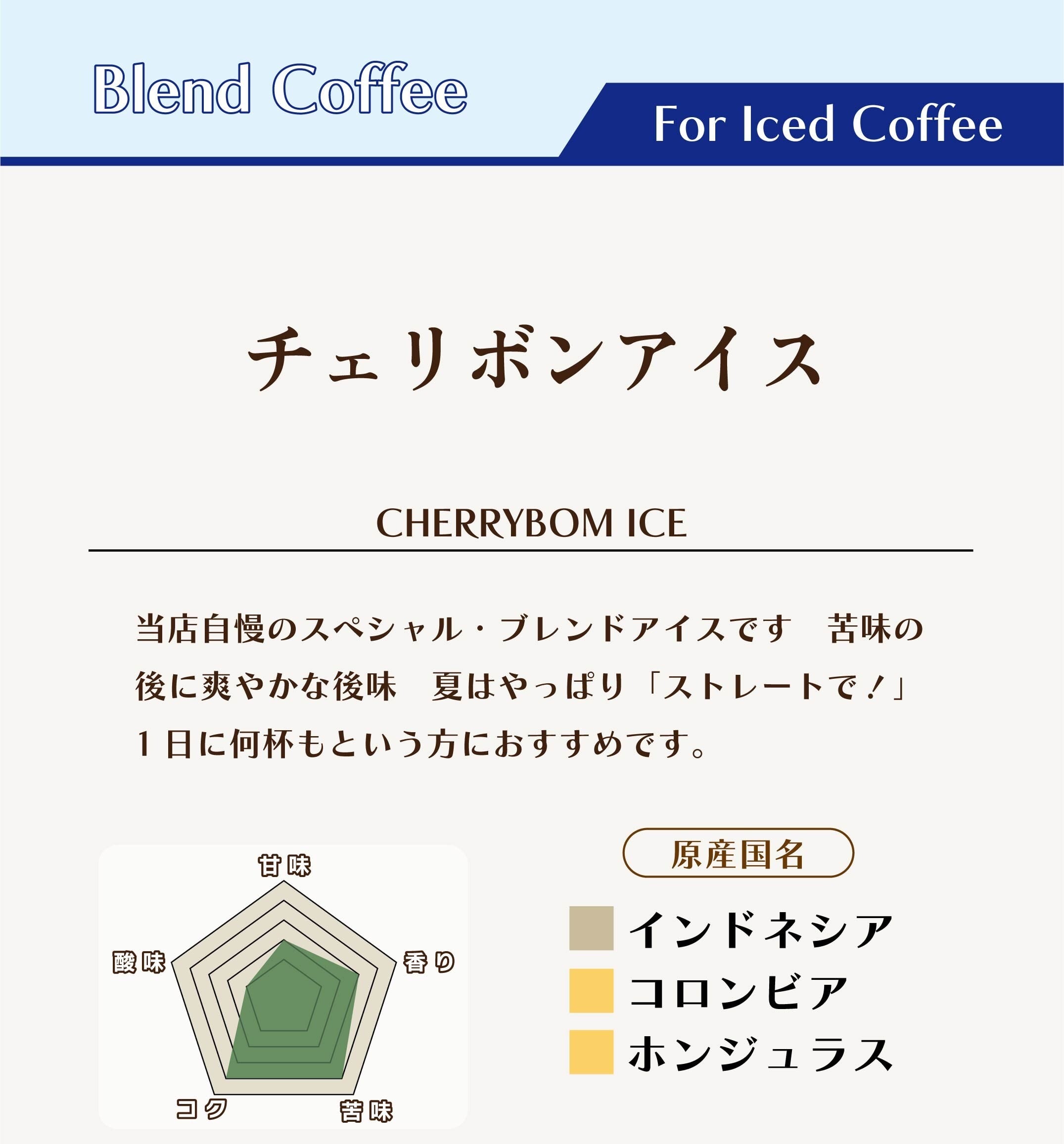 水出しコーヒーにもお勧めの自慢のアイスコーヒー用のブレンド。